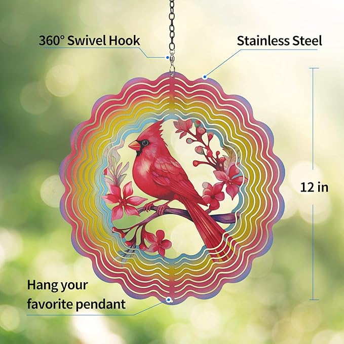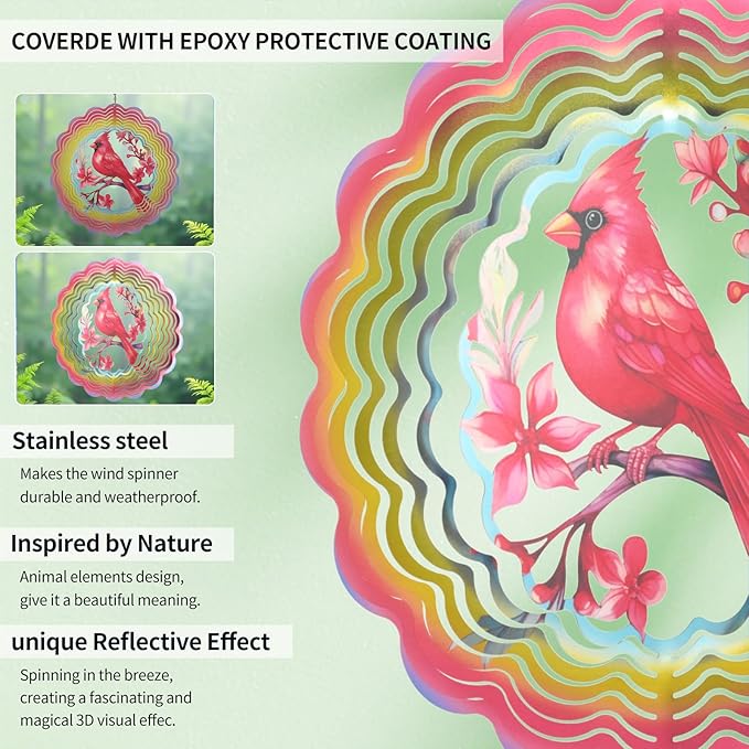 - Captivating Magical 3D Visual Effect - Eandisom Cardinala Wind Spinner surface of the metal wind spinner is additionally coated with a unique layer of colorful reflective material, when the breeze blows, the reflective colorful glitter material gives off a sparkling, creating a fascinating and magical 3D visual effect, its beautiful light reflecting and attractive view, for home, balcony, garden, patio, porch, backyard, courtyard, both indoor and outdoor will beautify decor your home.