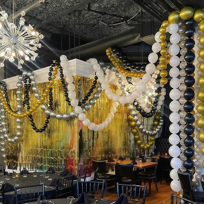 - High Quality Chain Balloons - Our chrome gold and white latex balloons are made of high quality materials with excellent elasticity and toughness. Linkable balloons are not easy to break or leak, and can stay full for a long time. The linking balloons will not fall off or damage easily during use, providing reliable quality assurance for your decoration needs.