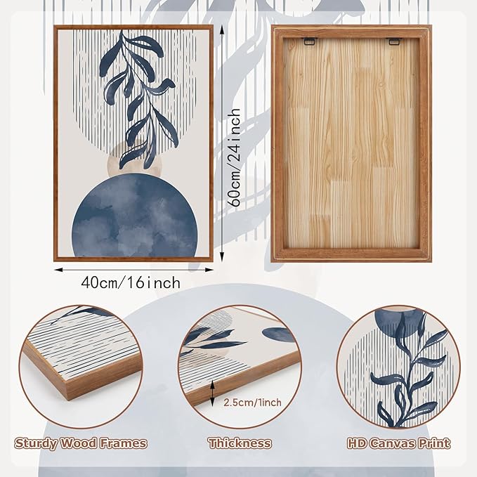 - 【Framed Botancial Wall Art】Blending bohemian flair and mid-century minimalism,these abstract wall art feature delicate geometric lines and organic botanical motifs.Perfect for adding a stylish,nature-inspired touch to any room,they effortlessly complement modern,boho,or eclectic decor styless