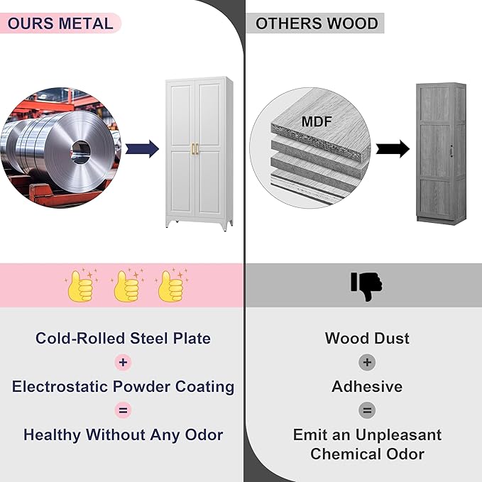 - Safe Anti Tipping Design: The back panel of the food pantry cabinet is equipped with 2 holes, you can use screws to fix the metal storage cabinet to the wall, unlike other cabinets. No dangerous tipping even if there are curious kids around. Ensure maximum stability and safety