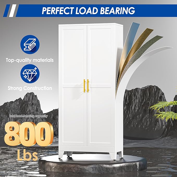 - 『♕Multifunctional Cabinet』Metal storage cabinet are perfect for various environments and are an ideal choice for livingroom, kitchen, dining room,office and more. You can use it as a pantry cabinet, food cabinet, kitchen cabinet, kitchen cupboard, utility cabinet, file cabinet, appliance cabinet, laundry room cabinets, bathroom floor cabinet, bedroom wardrobe cabinet, bookcase, tool cabinet, garage cabinet, etc. Of course, you can also use it for any place you want to place it. The smooth surface of standing stainless steel cabinet is easy to clean, you only need to wipe off the dirt with a damp cloth to keep it clean, orderly, and hygienic