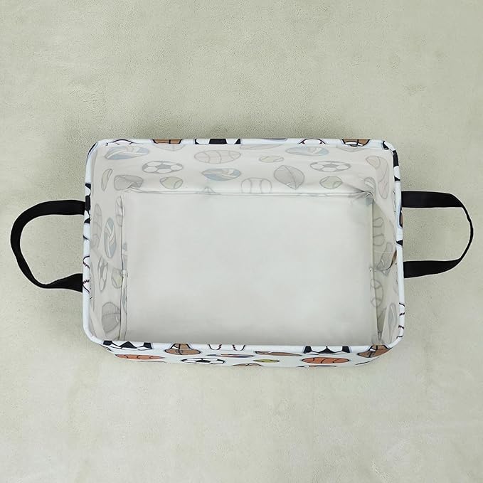 LANGYASHAN Rectangular Storage Bin Collapse Canvas Fabric Cartoon Storage Basket with Handles for Organizing Home Kitchen Boys and Girls Toys Office Closet Shelf Baskets (Rec Colorful Balls)