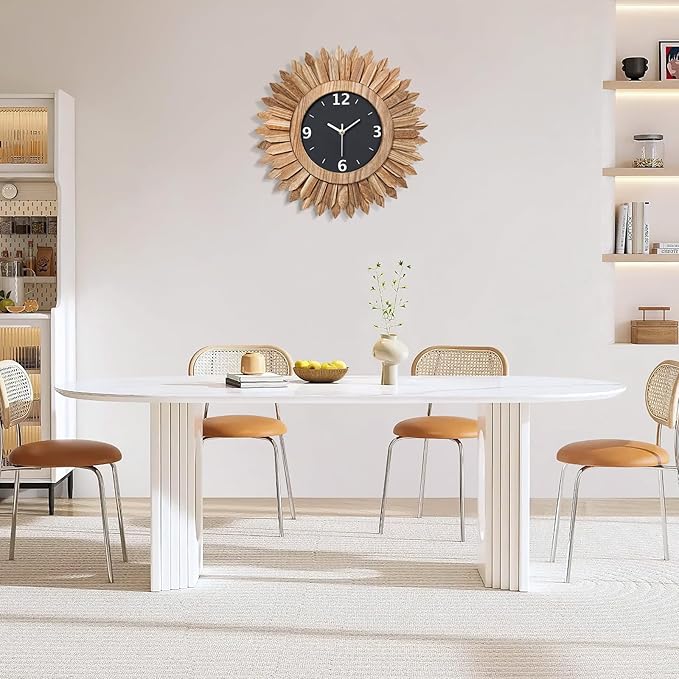 - Boho Wall Decor Clock: Inspired by the sunburst of Bohemian style, this modern wall clock face design is unique and eye-catching, 2 tier wood sunburst looks like the "sun". With a black wooden case, white hour, minute and seconds hands and large white arabic numerals, this decorative wall clock is easy to read from a distance