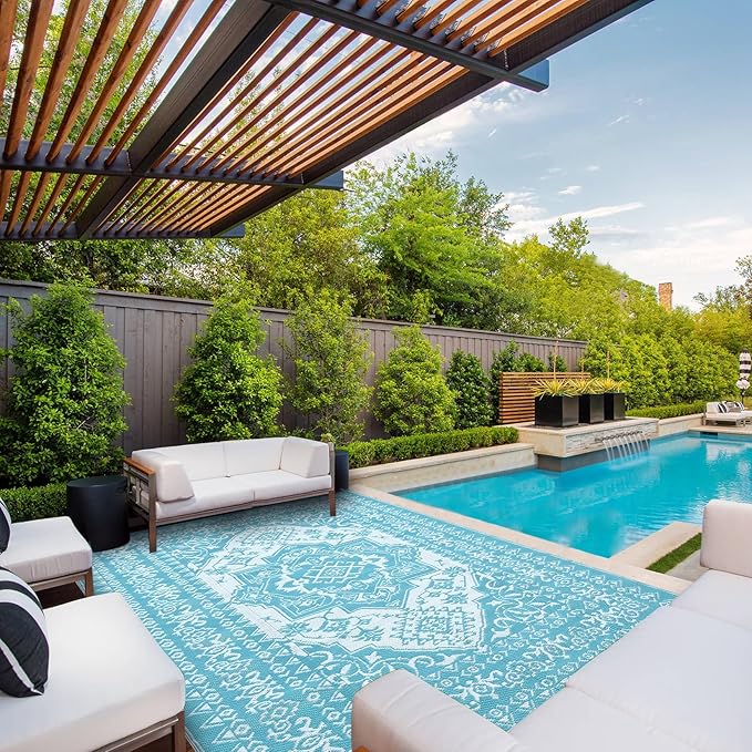 - Elegant Reversible Design: Instantly upgrade your outdoor space with the reversible plastic straw rug featuring a chic medallion pattern. Refresh your patio, deck, or balcony with two stylish looks in one—ideal for gatherings or relaxing evenings outside