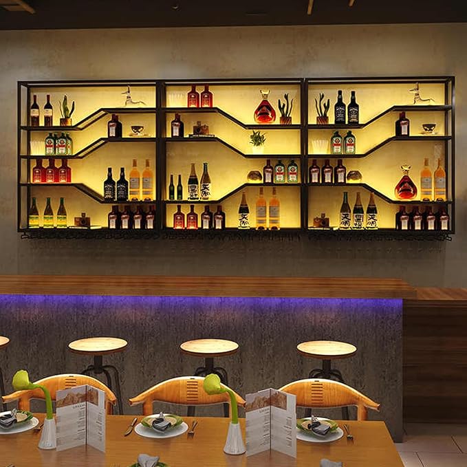 - AMPLE STORAGE CAPACITY: The wall bar shelves serves as both a bar decoration and a spacious wine storage cabinet. Whether unwinding at the small bar after a long day or hosting a party, this wall wine rack can store a large number of wines or spirits. It is also strong enough to support doubling as a storage shelf to keep the space tidy and orderly.
