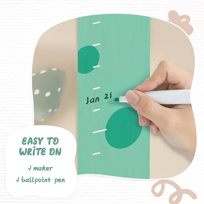 - Easy to Mark: The height measurement is engraved with clear and precise scales, you can customize different shapes of marker cards to record baby's height(with name and date), which is convenient for you to record your baby's growth moments at any time and witness every step of your baby's growth.