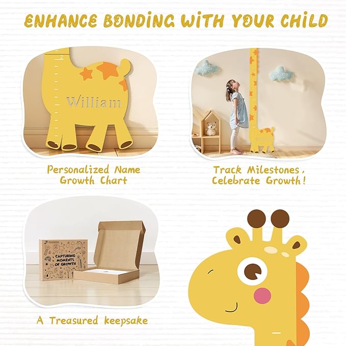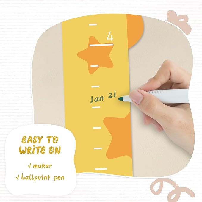 - Easy to Mark: The height measurement is engraved with clear and precise scales, you can customize different shapes of marker cards to record baby's height(with name and date), which is convenient for you to record your baby's growth moments at any time and witness every step of your baby's growth.