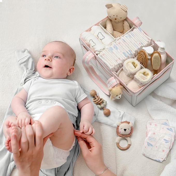 - LIGHTWEIGHT & MULTI-PURPOSE: This baby diaper caddy organizer with handle is perfect for nursery storage, car caddy, or bedside diaper changing station. Store diapers, wipes, breast pump, baby bath items, or toys—ideal for travel and everyday use as baby room organizer and storage