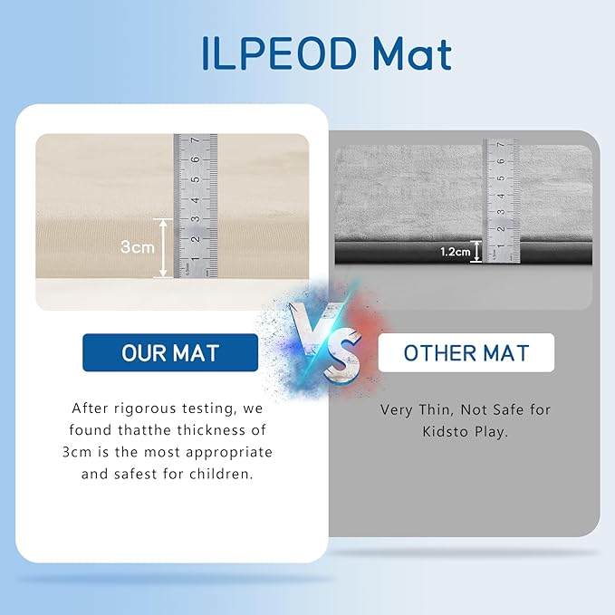 - 🌟HOW TO CARE FOR YOUR MAT:When you open the package,it may be wrinkled,very flat and inelastic.Don't fret - this is normal! As long as it is left for 3-5 days, the mat will naturally regain its thickness and elasticity. we recommend steaming or ironing it to speed up recovery. After you have completed the steaming/ironing, your thick floor padded mat should rebound and be ready to use!
