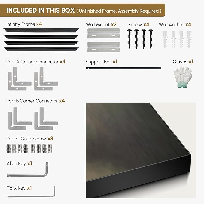 - Assembly Required: The artwork comes with the frame components unassembled. Don¡¯t worry - setup is straightforward and tool-friendly. For best results and accurate alignment, we recommend two people to ensure a smooth assembly and a stable, secure wall mount.