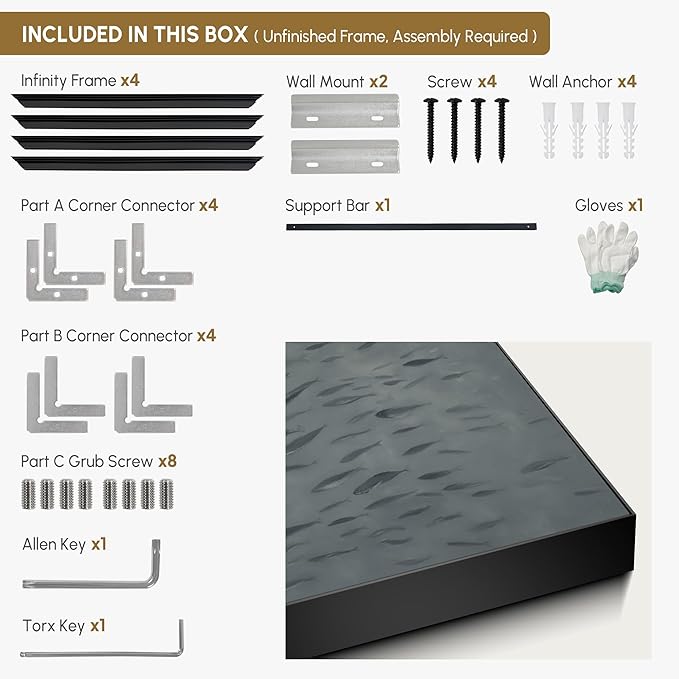 - Assembly Required: The artwork comes with the frame components unassembled. Don¡¯t worry - setup is straightforward and tool-friendly. For best results and accurate alignment, we recommend two people to ensure a smooth assembly and a stable, secure wall mount.
