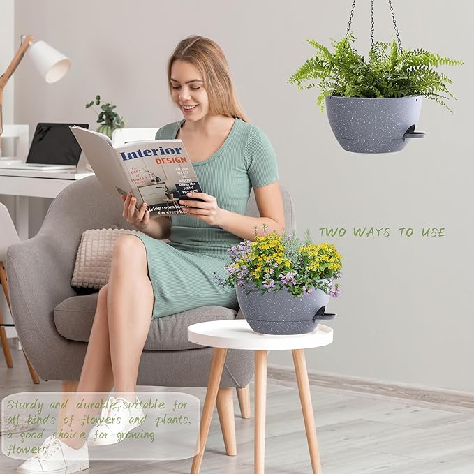 - 【Self-Watering Hanging Flower Pots with Removable Saucer】the appearance and structural design of the Hanging Pot prevents overwatering and acts as a water reservoir to promote Plant growth. It is suitable for a variety of Hanging Pot Plants, such as ivy, Herbs, Ferns, Philodendrons, Succulents, Flowers or other Plants