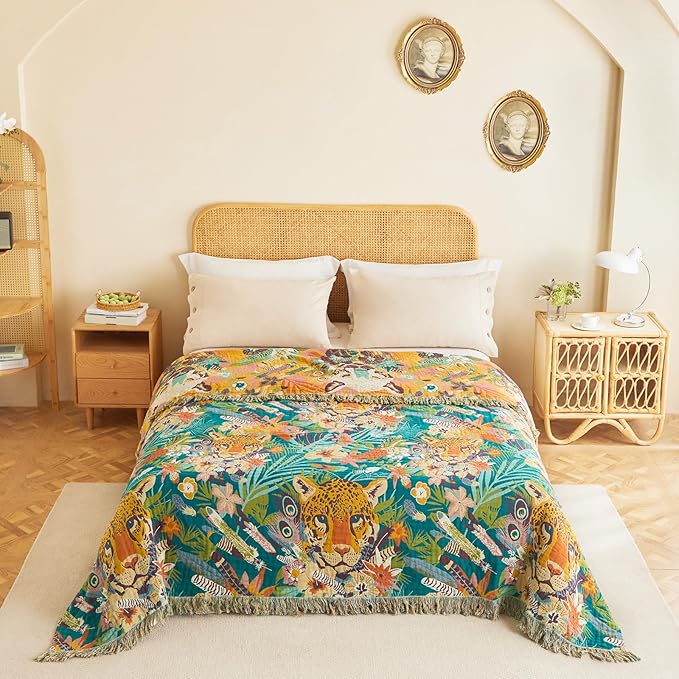 MSGKV Throw Blanket for Couch Bed Cotton Muslin Breathable Leopard Animals Twin Size Blanket 60"x80" for All Seasons Lightweight Farmhouse Blankets