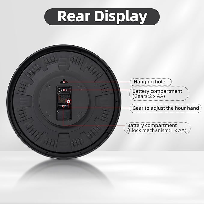 - Effortless Installation & Battery Operation: Ready to hang right out of the box! Simply use the integrated keyhole hanger. Requires 3 AA batteries: 1 for the clock movement, 2 dedicated to powering the mesmerizing gear motion. (Batteries Not Included).