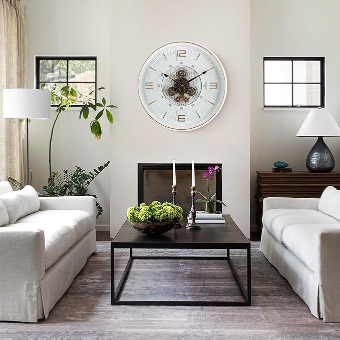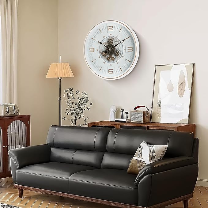 - Quiet Sweep Movement & Clear Readability: Features a high-torque quartz movement that operates with minimal sound (a soft hum near the gears may be perceptible in very quiet rooms), significantly quieter than traditional tick-tock clocks. Large, bold Arabic numerals ensure effortless time reading from across the room.