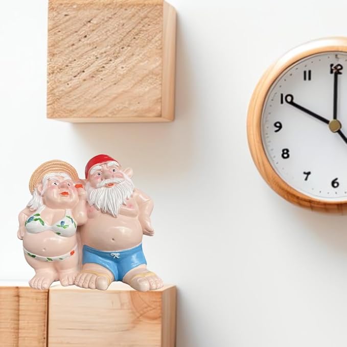 - Interesting Design: The Women Man Double Gnome Statue features intricate and whimsical details, showcasing playful gnomes with cheeky expressions, perfectly capturing the fun spirit of summer with their beach attire.