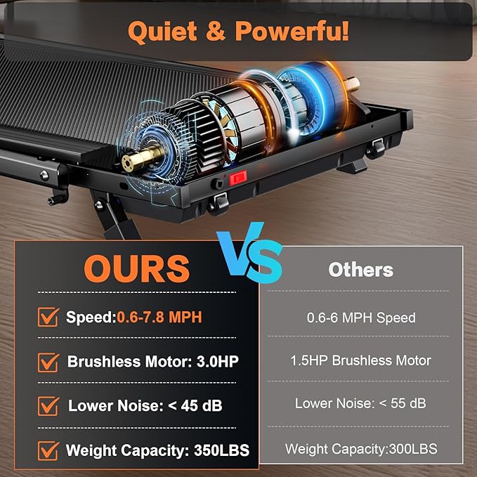 - 【Portable Treadmill with Handles】Our 2 in 1 foldable treadmill offers a speed range from 0.6 to 6.2 mph. After the treadmill handle is folded,0.6-2.0 mph working mode, When the treadmill handle is raised, 2.5-5.0 mph jogging mode, 5.0-7.8 mph running mode, Based on your exercise needs, walking, running adjust the speed to achieve better exercise results.