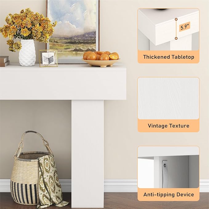 - Premium Material and Stable Construction: High-quality MDF material enhance safety and stability, the back of the hallway table for entryway has anti-toppling fittings to keep the console table stable. The thickened boards and frame ensure the entryway table large load-bearing capacity, effectively supporting up to 300 lbs! Making the farmhouse entryway table sturdy enough for long-term use.