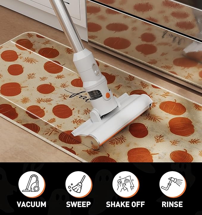- 【Versatile Sizes for Every Space】Measures 17" x 29" and 17" x 47", our mat fits seamlessly in kitchens, dining areas, or entryways. Use the smaller size by the sink or stove, and the longer one for high-traffic spots to tie your Halloween theme together.Our stylish kitchen mats make a beautiful addition to your kitchen, dining room, laundry rooms,craft rooms and office spaces