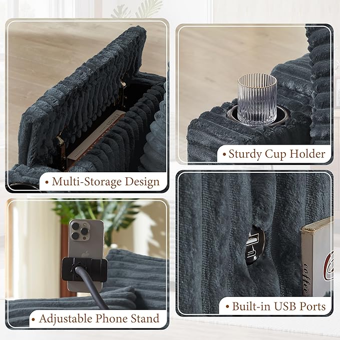 - Smart Storage Solutions — Hidden Compartments in Armrests: Keep your space clutter-free with discreet storage compartments under the armrests. Perfect for stashing remotes, books, or blankets, this feature enhances your chairs living room area by combining style with smart practicality.