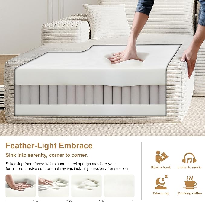 108" Sectional Couches for Living Room Modern Modular Sofa with L-Shape Couchs Upholstered Boneless Couch Deep Seat Sectional Couch with Chaise (White, Left Facing Chaise+2Seaters+1Ottoman)
