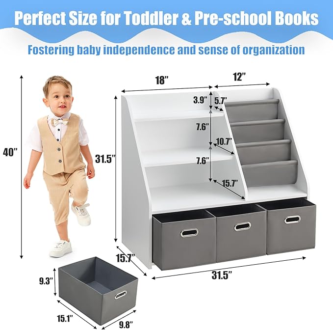 - ⭐️ [Quick Assembly & Versatile Placement] Comes with all tools and a clear manual for easy setup. Whether it’s in the kids' room, playroom, nursery, classroom, or reading corner, this bookshelf with toy bins helps keep your child’s space neat and tidy — and it’s easy to wipe clean.