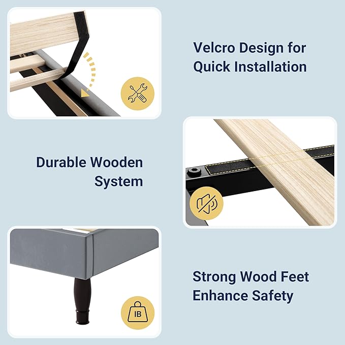 - No Box Spring Needed: With velcro wooden slats provide even easily assembled, also to prevent your mattress from slipping, provide reliable support for your mattress without the need for a box spring. Weight capacity: 900 Lbs.