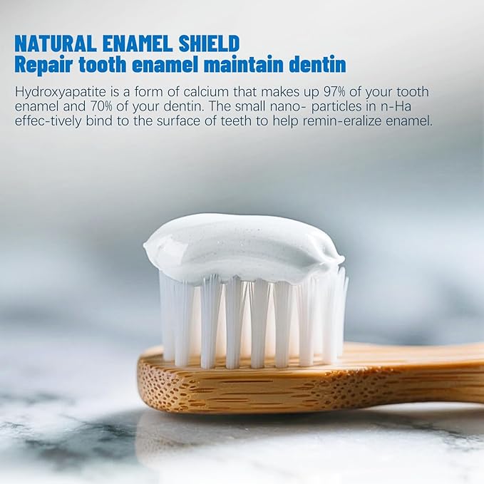- 🛡️【Natural Enamel Shield】Hydroxyapatite is what your teeth truly want. It is a naturally occurring mineral that closely mimics the composition of human teeth and bones. This similarity helps restores and strengthens enamel, reducing the risk of cavities and erosion, promoting long-term oral health. Rebuilds your smile's armor.
