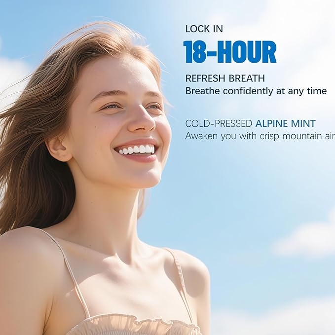 - 🔒【Lock in 18-hour Refresh Breath】Our Toothpaste enriched with cold-pressed Alpine mint. Transform your morning ritual into a sensory escape—awaken with crisp mountain air that powers through workouts, Zoom calls, and date nights. Breathe boldly, anywhere.