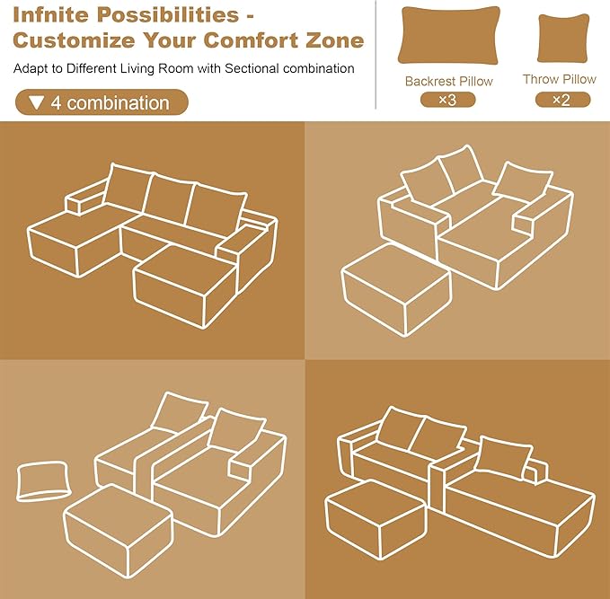 108" Sectional Couches for Living Room Modern Modular Sofa with L-Shape Couchs Upholstered Boneless Couch Deep Seat Sectional Couch with Chaise (Green, Left Facing Chaise+2Seaters+1Ottoman)