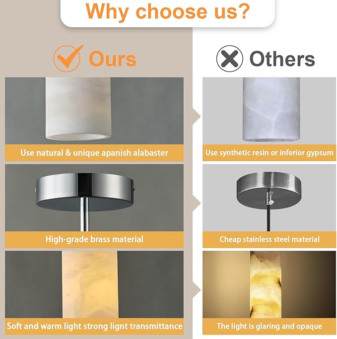 - 【Great Seviers & Easy Install】Alabaster marble pendant light is hardwired, suitable for US standard junction boxes. All installation materials included in the package. Please read the instructions provided carefully before installation. If you encounter any difficulties in installing this beautiful marble pendant light, please feel to contact us. We will get back to you within 24 hours.