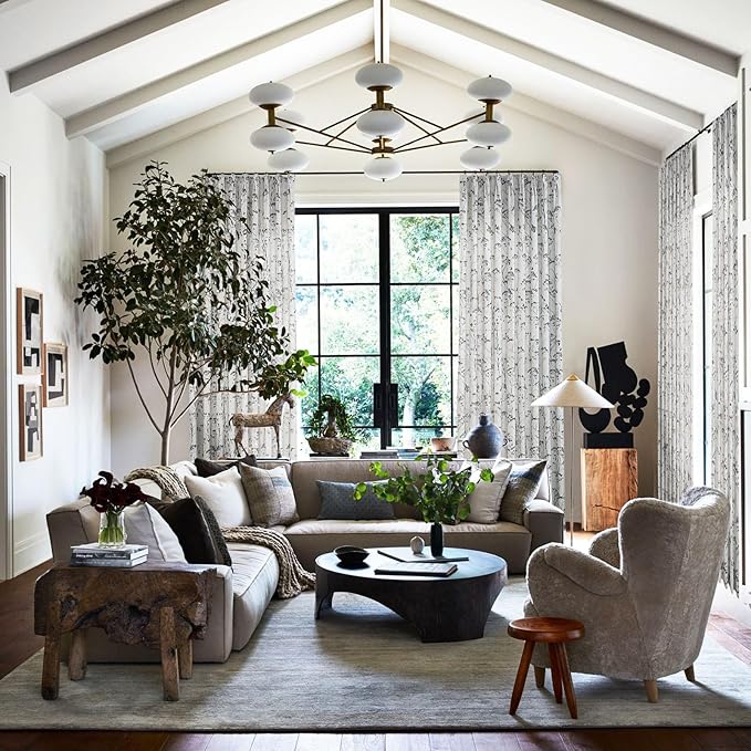 - Design: These linen-blend curtains feature a unique and elegant ink-wash print of tree branches, exuding a Chinese-style elegance. The simple color scheme is suitable for any room style, adding a distinctive touch to your home decor.